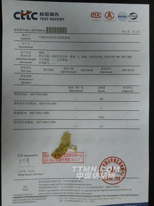 圖2 試紡5 Nm粘膠雪尼爾紗測試報告