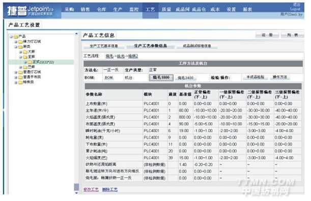 系統(tǒng)根據(jù)實時記錄下的機臺歷史操作信息,分產(chǎn)品和工藝建立完備的產(chǎn)品管理檔案。當接到訂單時,系統(tǒng)根據(jù)歷史生產(chǎn)數(shù)據(jù)挑選最佳生產(chǎn)工藝流程,制定機臺最優(yōu)運轉(zhuǎn)參數(shù),并指導安排車間生產(chǎn)計劃。