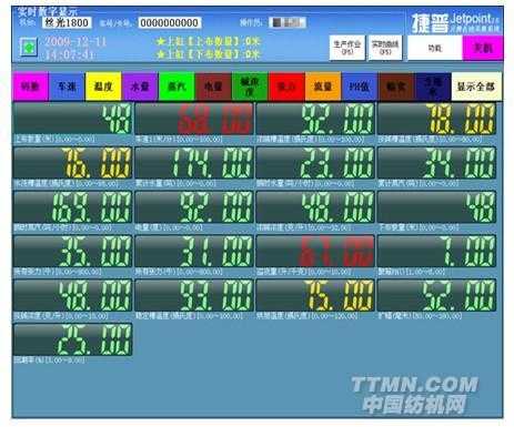 系統(tǒng)通過對生產(chǎn)工藝參數(shù)的在線采集和預警,確保標準工藝的執(zhí)行,消除非正常次品和回修的產(chǎn)生,穩(wěn)定產(chǎn)品品質(zhì);通過對機臺水、電、汽能耗數(shù)據(jù)的在線采集,可以準確核算布種單位能源消耗,有效控制能源成本;通過對車間布匹流轉(zhuǎn)數(shù)據(jù)的在線采集,可以實時追蹤生產(chǎn)的進度,確保按照生產(chǎn)計劃執(zhí)行,有效減少丟車和撕布現(xiàn)象;在車間裝有大屏幕 LCD 看板系統(tǒng),滾動顯示訂單生產(chǎn)進度等信息;通過對采集的生產(chǎn)歷史數(shù)據(jù)進行分析,還可以優(yōu)化生產(chǎn)工藝,準確核算生產(chǎn)成本,為企業(yè)提供科學高效的決策依據(jù),達到企業(yè)最優(yōu)化管理。