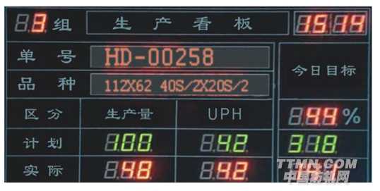 (1)車間LCD看板系統(tǒng)——滾動顯示訂單生產(chǎn)進度、當前車間的生產(chǎn)任務、產(chǎn)量匯總信息、車間布帳流轉(zhuǎn)信息等。