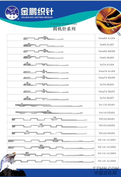 其中圓機(jī)針系列包括Vota65.41J04、VO74.41J04、V0110.52J01等35款不同型號(hào)的圓機(jī)針。