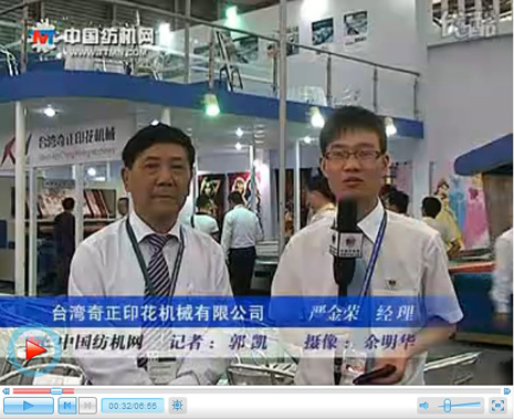 今年六月,2010年中國國際紡織機械展覽會暨亞洲展覽會于上海舉行。在展會現(xiàn)場,記者有幸采訪到臺灣奇正印花機械有限公司嚴(yán)金榮經(jīng)理。