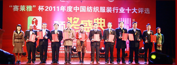 2011年11月24日,由知名電子商務(wù)網(wǎng)絡(luò)服務(wù)商慧聰網(wǎng)所主辦的“賽萊雅”杯中國新勢力-2011年度紡織、服裝行業(yè)十大風(fēng)云人物在中國北京釣魚臺(tái)國賓館隆重舉行。中國電子商務(wù)協(xié)會(huì)、中國百貨商業(yè)協(xié)會(huì)、北京服裝紡織行業(yè)協(xié)會(huì)、北京電子商務(wù)協(xié)會(huì)、中國紡織品進(jìn)出口商會(huì)等眾多領(lǐng)導(dǎo)出席了此次頒獎(jiǎng)盛典,新華網(wǎng)、千龍網(wǎng)、中國加盟網(wǎng)、紡織服裝周刊、中國服飾雜志、服裝界等數(shù)十家國內(nèi)行業(yè)權(quán)威媒體也全程參與了此次盛會(huì)。
