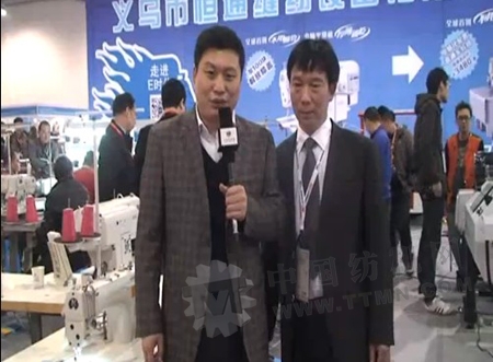 記者:觀眾朋友們大家好,中國(guó)紡機(jī)網(wǎng)記者紡友,在2013年義烏展現(xiàn)場(chǎng)給你做現(xiàn)場(chǎng)報(bào)道,我們現(xiàn)在所在的展臺(tái)是浙江省義烏恒通縫紉設(shè)備有限公司的展臺(tái),恒通公司的劉總在這個(gè)行業(yè)已經(jīng)深耕多年,恒通公司也是義烏最大的縫紉設(shè)備流通商之一。