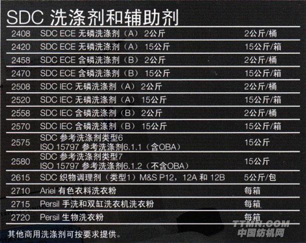 SDC洗滌劑和輔助劑使用詳情