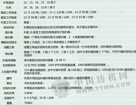 精智(SmartPro ES)單面提花無縫內衣針織機技術參數: