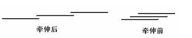 由此可知:須條牽伸后與牽伸前相比,纖維頭端拉長了E倍,因此按照此規(guī)律牽伸,牽伸前后的均勻度沒有變化。如圖所示為纖維牽伸前后的排列狀態(tài):