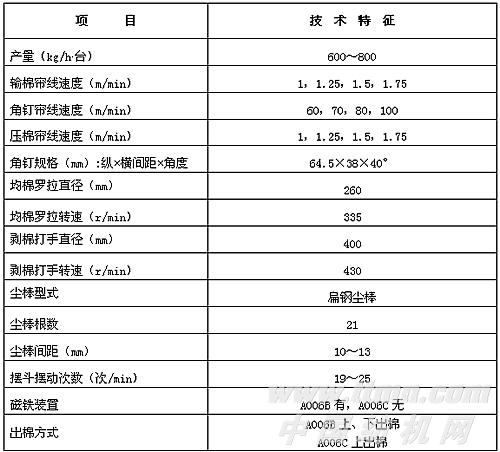 表2-3-4 A006B、C型自動混棉機(jī)的主要技術(shù)特征