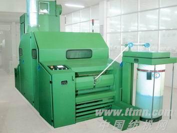 本機將清梳聯(lián)喂棉箱輸送的筵棉進行梳理,除雜并排除部分短絨后,集束成較均勻的棉條,有規(guī)律的圈放在棉條筒內(nèi),供后續(xù)工序使用。本機設計最高出條速度220米/分,實際產(chǎn)量在35-55公斤/小時,用PC機控制,設有長短片段自調(diào)節(jié)勻整裝置,采用多電機轉(zhuǎn)動,簡化了傳動機構(gòu)。本機主要零部件如機架,錫林筒體,道夫筒體等均采用鋼板結(jié)構(gòu)、刺輥下設預分梳板,錫林前后各設三根固定蓋板,活動蓋板總數(shù)為80根,工作蓋板為30根,蓋板運行方向與錫林轉(zhuǎn)動方向相反,整機牢固可靠,外形整齊,安全可靠。