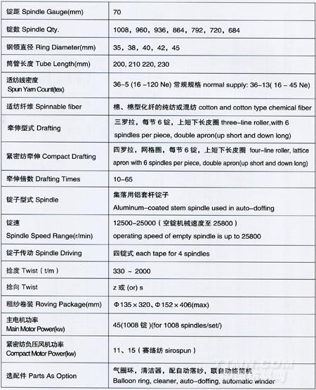 TH578系列緊密紡細(xì)紗機(jī)規(guī)格與參數(shù)
