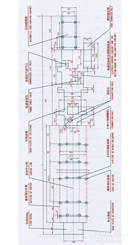 TH578系列緊密紡細(xì)紗機(jī)地腳平面圖