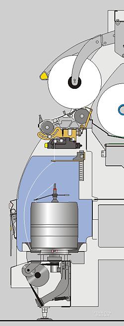 倍捻紗線的工藝路線 兩個(gè)喂入卷裝同時(shí)喂入是可能的。 并紗喂入卷裝(一個(gè)喂入卷裝) 兩根紗線已經(jīng)被(事先)合并到一個(gè)筒子上。 紗線從喂入卷裝上通過(guò)錠翼退繞。 錠翼的作用是防止紗線被喂入卷裝的邊緣卡住并保證紗線從卷裝上順利退繞。 單紗喂入卷裝(兩個(gè)喂入卷裝) 兩個(gè)疊在一起的卷裝,每個(gè)上面都是一根單紗。 未加捻的兩個(gè)疊在一起的卷裝被放在固定的錠罐內(nèi)。 紗線從喂入卷裝退繞通過(guò)錠芯的頂點(diǎn)穿入錠芯內(nèi)部的紗線通道以及掌力調(diào)節(jié)裝置。 紗線沿著儲(chǔ)紗盤(pán)的溝槽出來(lái)然后形成環(huán)繞固定錠罐的氣圈。氣圈導(dǎo)紗鉤的位置以及在某些機(jī)器型號(hào)中配備的氣圈罩決定了氣圈的大小。 然后紗線通過(guò)紗線傳感器的偏轉(zhuǎn)落淚來(lái)到預(yù)卷取軸。最后橫動(dòng)導(dǎo)紗裝置引導(dǎo)紗線在卷取羅拉傳動(dòng)的卷取筒管上。 |