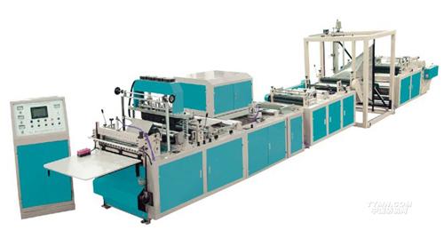 該機(jī)適用原材料為無紡布,能加工各種不同規(guī)格,不同形狀的無紡布袋,平口袋,手提袋,背心袋,穿繩袋等。該機(jī)集機(jī)電為一體,運(yùn)用LCD觸摸屏操作,配以步進(jìn)定長,光電跟蹤,電腦定位,自動(dòng)糾偏,自動(dòng)計(jì)數(shù),自動(dòng)報(bào)警,連續(xù)打孔等工控裝置,使其生產(chǎn)的成品封線牢固,切線美觀,是您可以放心選用的優(yōu)質(zhì)環(huán)保型制袋設(shè)備。