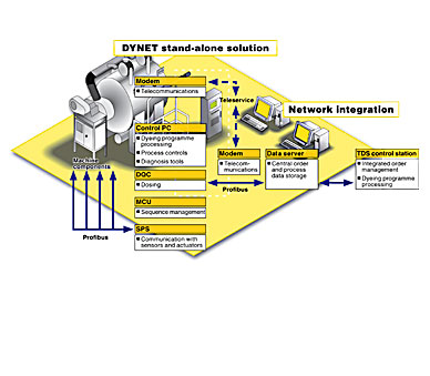 染色程序和所有需要的參數(shù)都完全載入MCU中, PLC控制單元自動地控制程序運(yùn)作。Profibus系統(tǒng)簡化了電器裝置亦令排難變得更容易。