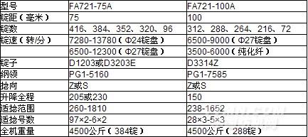 FA721-75A,100A系列環(huán)錠捻線機(jī),適用于棉、棉與化纖、混紡紗及純化纖的捻線加工,供機(jī)織和針織用線。
