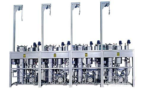 由單缸1個(gè)至6個(gè)筒子紗至最多24個(gè)筒子紗的多缸設(shè)備,載量視處染物的重量而定