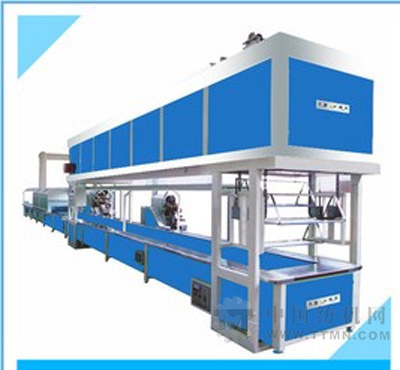 各烤箱均設(shè)計(jì)為調(diào)溫式,可根據(jù)不同面料的皮鞋設(shè)定相對(duì)的溫度,輸送帶勻速輸送,可根據(jù)工人的熟練程度調(diào)節(jié)輸送速度,高架式定型烤柜,設(shè)置于夾包段上端,使整個(gè)工作環(huán)節(jié)運(yùn)行流暢,且節(jié)省空間