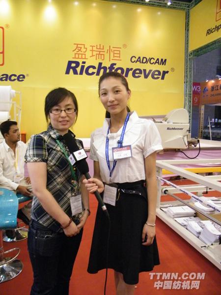 富怡集團(tuán)銷售經(jīng)理任清華女士與中國紡機(jī)網(wǎng)TTMN.com記者