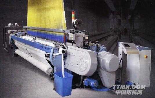 該機采用空間連桿引緯機構、無劍帶導鉤引緯;主電機直接驅動,油循環(huán)冷卻系統(tǒng)冷卻主電機。