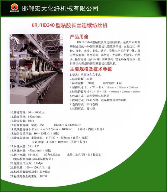 -KR HD340型粘膠長絲紡絲機鄭州紡機邯鄲宏大化纖機械有限公司