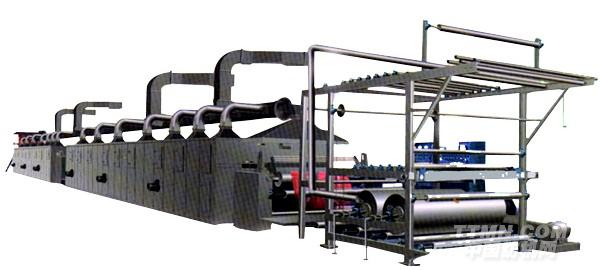 該機(jī)采用國際先進(jìn)技術(shù),采用高溫導(dǎo)熱油、電加熱等方式,將粉點(diǎn)均勻轉(zhuǎn)移到需要復(fù)合面料里布上,經(jīng)過定型針板式及網(wǎng)帶式輸送進(jìn)入加熱烘箱預(yù)烘,經(jīng)過工藝加工與外面料緊貼復(fù)合,具有粉點(diǎn)復(fù)合均勻、透氣性好、平整度高、不起泡、手感好、牢度強(qiáng)、耐水洗、不變形、成本低等特點(diǎn)。本機(jī)采用自動糾邊及變頻調(diào)整系統(tǒng)保證復(fù)合整齊。
