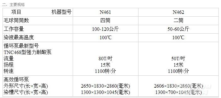 二.絞線染色機的規(guī)格和性能