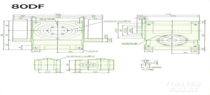 臺灣DF凸緣型分割器是純機(jī)械結(jié)構(gòu),具有自鎖功能、分割精度高、順暢度良好、無噪音、可高速運(yùn)作間歇傳動(dòng)、運(yùn)作平衡等顯著優(yōu)點(diǎn)。產(chǎn)品廣泛用于各種多工位組合機(jī)床,機(jī)床加工中心、壓力機(jī)、電光源設(shè)備、自動(dòng)送料機(jī)、印刷機(jī)械、食品包裝機(jī)械、制藥機(jī)械、玻璃陶瓷機(jī)械等,產(chǎn)品說明:左右搖擺、上下夾取系統(tǒng)緊密及高精度、高速度之夾取輸送、為您自動(dòng)化系統(tǒng)提供了多變化流程功能。FN系列為出力軸上下往復(fù)運(yùn)動(dòng)兼間歇旋轉(zhuǎn)或左右搖擺運(yùn)動(dòng)之合成機(jī)種。FNL系列為出力軸凸緣分割盤面作間歇旋軸或左右搖擺運(yùn)動(dòng)。中空出力軸作上下往復(fù)運(yùn)動(dòng)與分割盤面各自分離作動(dòng)。中心空可配合空油壓管路或電控線路。技術(shù)參數(shù)項(xiàng)目符號單位數(shù)值出力軸容許徑向負(fù)荷C1kgf5出力軸容許軸向負(fù)荷C2kgf9出力軸容許力矩Tskgf-m平臺桌面型型號:80DT產(chǎn)品說明:此系列機(jī)種之尺寸設(shè)計(jì)特性與凸緣型弁酮萓A於驅(qū)動(dòng)運(yùn)轉(zhuǎn)上可承受超大軸向負(fù)載及垂直徑向壓力,在輸出端有一凸起固定盤面及大孔徑空心軸,可搭配設(shè)置動(dòng)態(tài)、靜態(tài)自動(dòng)化周邊設(shè)備,可將動(dòng)力源之電、油、氣管路置於空心孔內(nèi),此系列機(jī)種廣泛應(yīng)用於重負(fù)載、直結(jié)自動(dòng)化設(shè)備之各類機(jī)構(gòu)及產(chǎn)業(yè)機(jī)械,作同步自動(dòng)化間歇驅(qū)動(dòng)。技術(shù)參數(shù)項(xiàng)目符號單位數(shù)值出力軸容陵|向負(fù)荷C1kgf520出力軸容雀b向負(fù)荷C2kgf220出力軸容酗O矩Tskgf-m參考力矩表入力軸容陵|向負(fù)荷C3kgf220入力軸最大彎曲力矩C4kgf160入力軸最大扭矩C5kgf-m 9.5入力軸的GD2(注1)C6kgf-m20.03定位分割精度sec.30重量kg20注1:入力軸的GD2是在停留範(fàn)圍內(nèi)的數(shù)值。注2:C1至C5數(shù)值是達(dá)到安全系數(shù)=2時(shí)的數(shù)值。