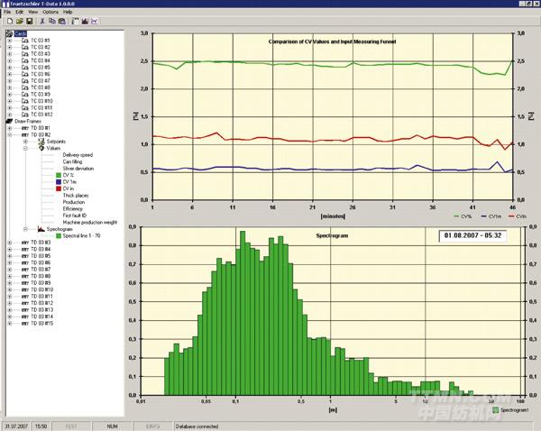 T-Data是特呂茨勒的數(shù)據(jù)管理系統(tǒng),用于收集評(píng)估紡紗廠前紡工序數(shù)據(jù)。該機(jī)器控制的數(shù)個(gè)屏幕顯示大量的生產(chǎn)和質(zhì)量數(shù)據(jù)。使用T-Data,將這些數(shù)據(jù)傳輸?shù)揭粋€(gè)超級(jí)坐標(biāo)系進(jìn)行評(píng)估、顯示和儲(chǔ)存的成本相當(dāng)?shù)汀?/p>