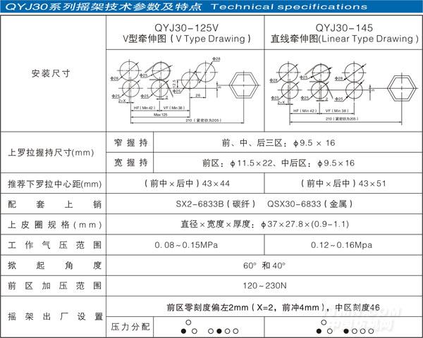 鉸鏈式結構,搖架的安裝一次性即可鎖緊且定位準確一致,在刻度一致的前提下,壓力可免調(diào)試即可達較一致水平。偏心調(diào)壓位置更靠近人體,使壓力調(diào)試更加方便,克服了該類搖架壓力調(diào)試不方便且勞動強度大的缺陷。獨有的專利結構確保壓力穩(wěn)定不衰減,克服了該類搖架采用六角支桿后仍用哈呋調(diào)壓導致的理論及實際壓力不穩(wěn)定的缺陷。專利結構使搖架的加壓和掀起更加輕松方便。優(yōu)化的加壓鞍定位基準長配合設計及先進的沖壓工藝確保零件的高精度和一致性,保證皮輥的平行度。優(yōu)質(zhì)的進口材料、先進的加工及熱處理工藝確保上銷壓簧壓力的準確性和一致性,使紡紗錠差減小。高系列化拓展,使其適應普通環(huán)錠紡及各類緊密紡。
