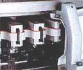 菱角座與菱角的配合是以電腦繪圖程式所設計組合,再結合了CNC電腦加工機,製造出精密的菱角組合。對於全針菱角、半針菱角與平針菱角的變換,不需拆除菱角座與紗線,可在機上直接抽換,操作簡單,可節(jié)省大部份的改機時間,提高機臺的工作效率。