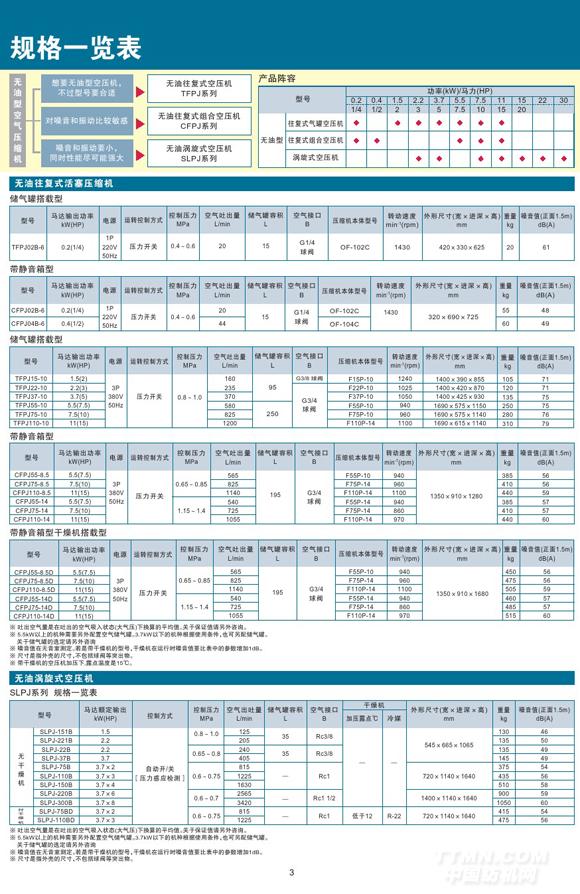 無(wú)油活塞式空氣壓縮機(jī)帶靜音箱型干燥機(jī)搭載型詳細(xì)參數(shù)