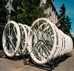 產(chǎn)品結(jié)構(gòu):玻璃鋼穿管器主要有玻璃鋼覆塑桿、手動推車、牽引輪、牽引頭、對接頭和誘導(dǎo)頭等金屬配件組成。