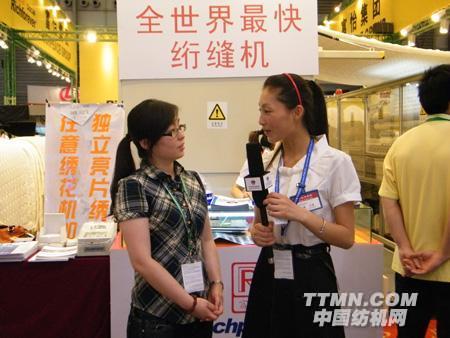 富怡集團銷售經(jīng)理任清華女士與中國紡機網(wǎng)TTMN.com記者