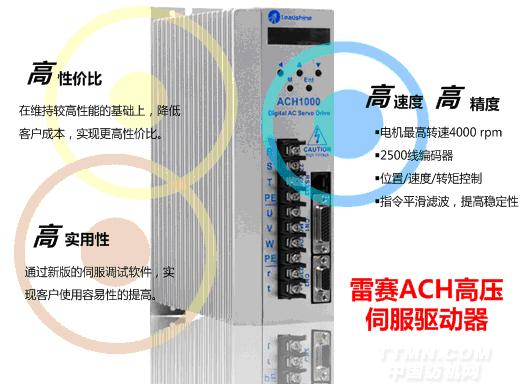 ACH系列是雷賽最新推出的高壓交流伺服產(chǎn)品,采用高性能DSP硬件平臺(tái),結(jié)合了雷賽成熟伺服控制技術(shù)和領(lǐng)先驅(qū)動(dòng)技術(shù),具有高加速、高精度、高穩(wěn)定性、調(diào)試簡(jiǎn)便等特點(diǎn),可驅(qū)動(dòng)400W-1.5KW伺服電機(jī)。