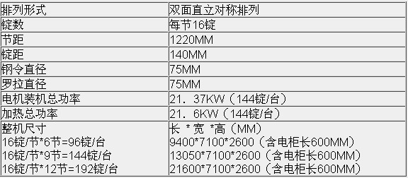 *每節(jié)16錠,客戶可根據(jù)自己的需要,靈活選擇:96錠/臺,144錠/臺,192錠/臺等型號;