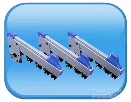 3、皮輥加壓組件設有平行支架結(jié)構,此機構對皮輥有良好的導向作用,使皮輥和羅拉的平行度有可靠的保證。