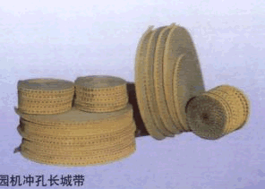 沖孔長(zhǎng)城帶主要用于圓織機(jī)。規(guī)格一般通用,非標(biāo)可訂做。