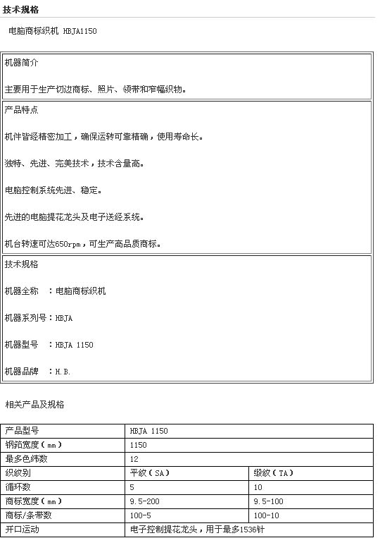 - [產(chǎn)品]-->電腦商標織機 HBJA 1150