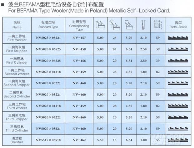 波蘭BEFAMA型粗毛紡設(shè)備自鎖針布配置