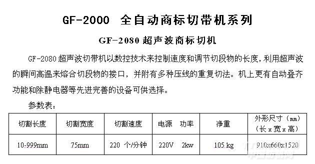 您所在的位置:紡機(jī)網(wǎng) >> 肇慶市金輝印刷機(jī)械有限公司 >> GF-2080超聲商標(biāo)波切機(jī)