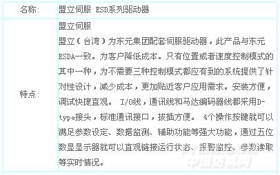 您所在的位置:紡機(jī)網(wǎng) >> 常州步云工控自動(dòng)化有限公司 >> 盟立伺服 ESD系列驅(qū)動(dòng)器
