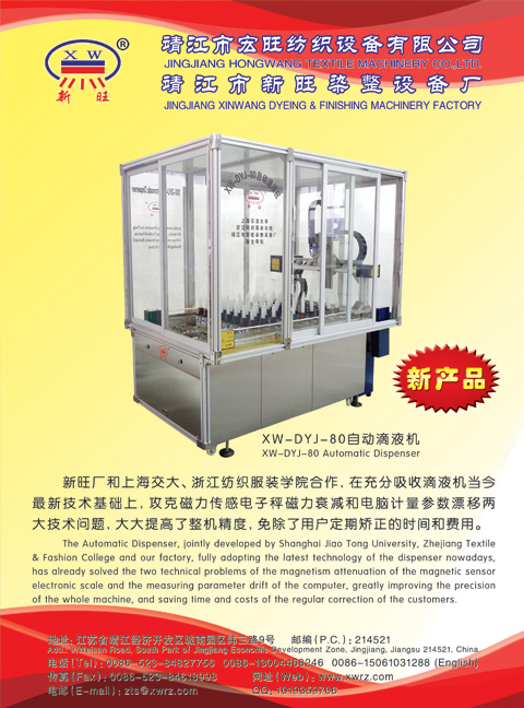 您所在的位置:紡機網(wǎng) >> 靖江市宏旺紡織設(shè)備有限公司 >> XW-DYJ-80自動滴液機