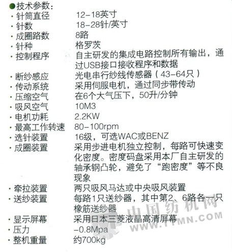 GD-NJ08全電腦針織無縫內(nèi)衣機經(jīng)過本公司多年的自主傾力研究,該機秉承8路無頭機以及12路機器的制造經(jīng)驗,增加了機頭扎口機構(gòu),能根據(jù)工藝要求自動完成織物的羅口編織,不需要縫紉加工。該設備可編織毛圈、集圈等各種組織,擁有強大的添紗提花能力,用于生產(chǎn)內(nèi)衣、外衣、泳衣、運動衣及保健織物等。